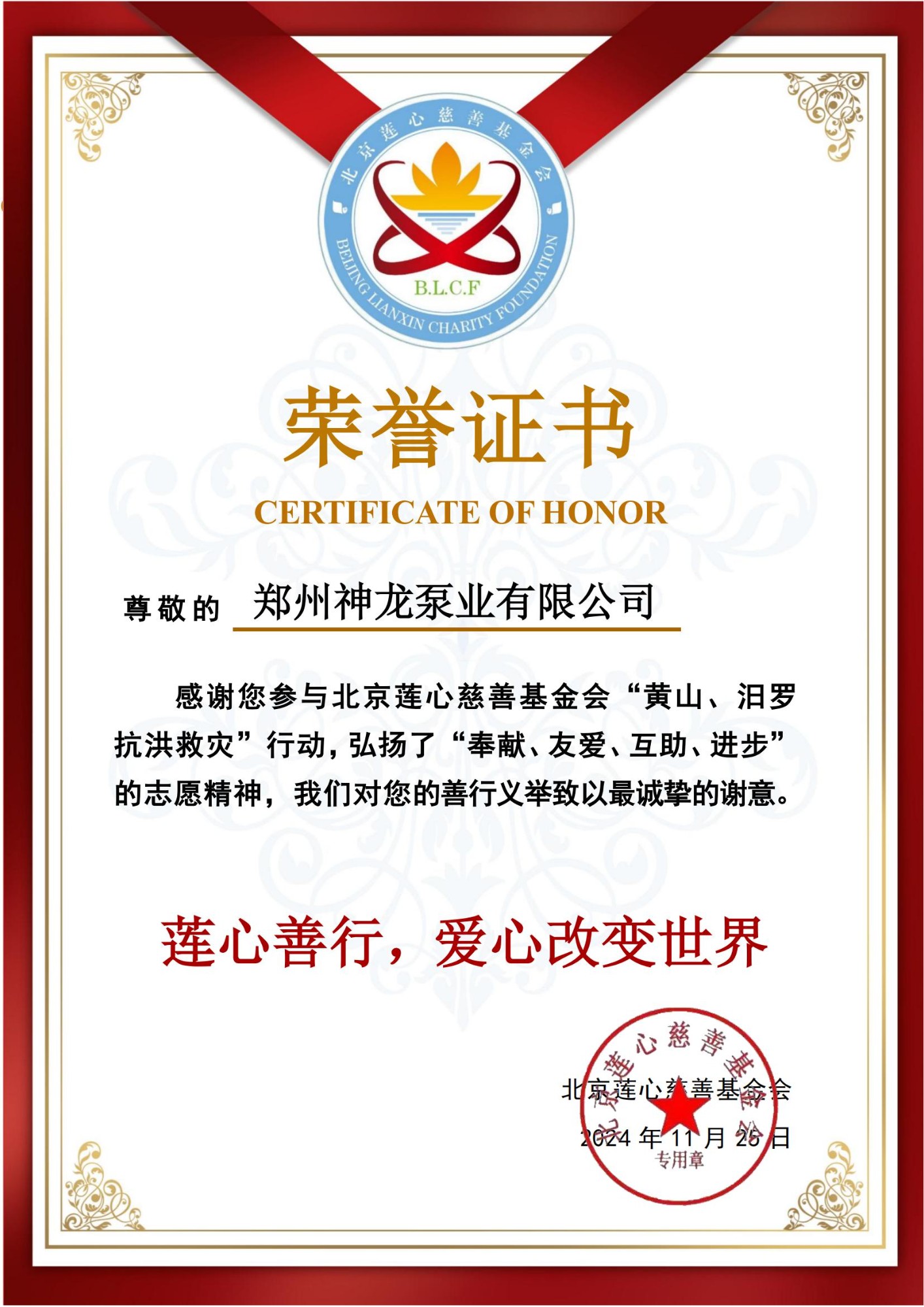 北京莲心慈善基金会感谢AOA最新版登录中国有限公司官网参与“黄山、汨罗抗洪救灾”行动